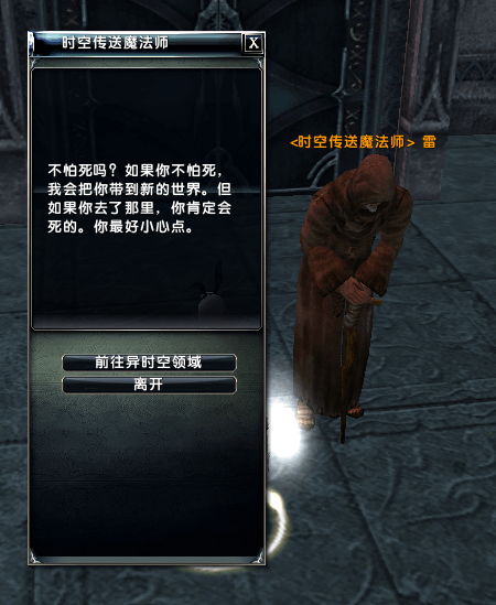 1. 角色等级不低于60级,通过各主城的【时空传送魔法师】进入【异时空领域】。
