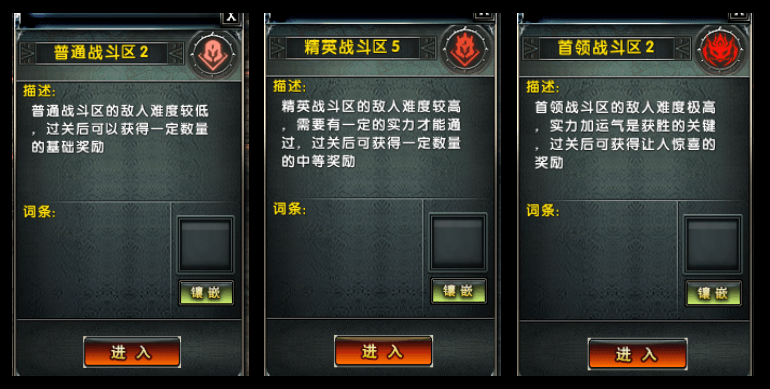 战斗事件:普通战斗事件、精英战斗事件、BOSS战斗事件,需要击败目标条件的怪物数量后完成挑战,难度由简单到苦难递增;完成挑战后可自主选择奖励,奖励根据战斗难度决定;