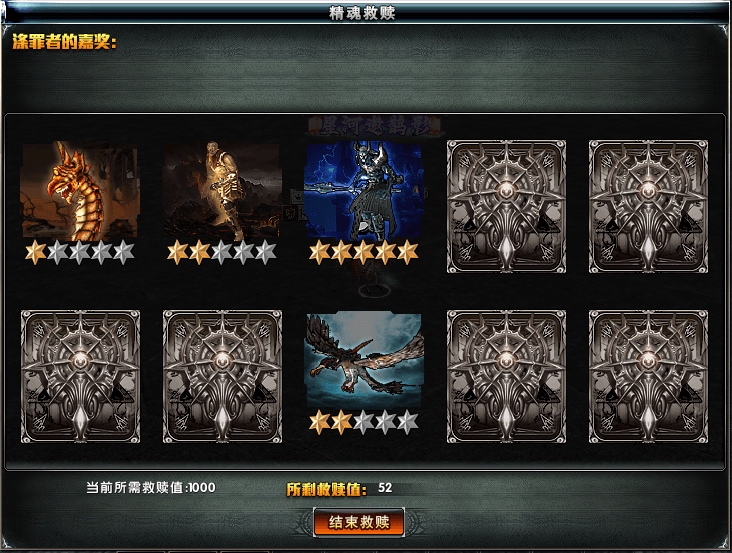 点选结束救赎后关闭此界面,本次剩余的救赎值归零;