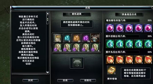 注:若不放置任何精化卷轴,则无法进行高级装备合成,此时的装备合成为普通合成。
